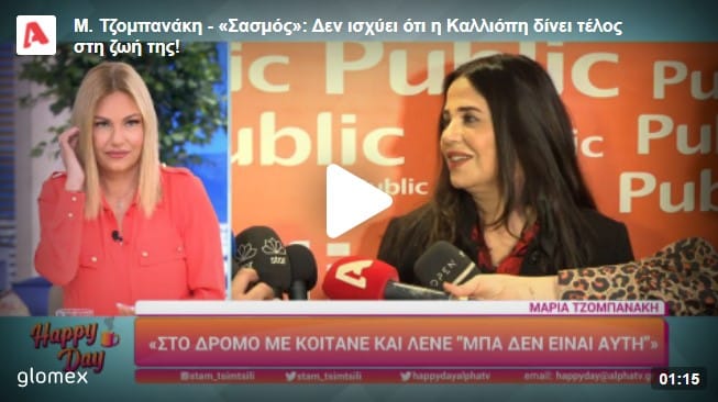 Η Μαρία Τζομπανάκη ανέφερε χαρακτηριστικά στην κάμερα της εκπομπής, Happy Day:«Είμαι μάνα και Κρητικιά! Δεν είμαι Καλλιόπη, είμαι ένα σκαλάκι κάτω από την Καλλιόπη. Είναι μεγάλη χαρά ο γάμος του γιου μου. Το πιο μεγάλο γεγονός είναι το παιδί μας που ήρθε ένας ήλιος στη ζωή μας, η Γεωργία μας, που είναι μια υπέροχη γυναίκα και όλο αυτό θα το γιορτάσουμε όλοι μαζί».
