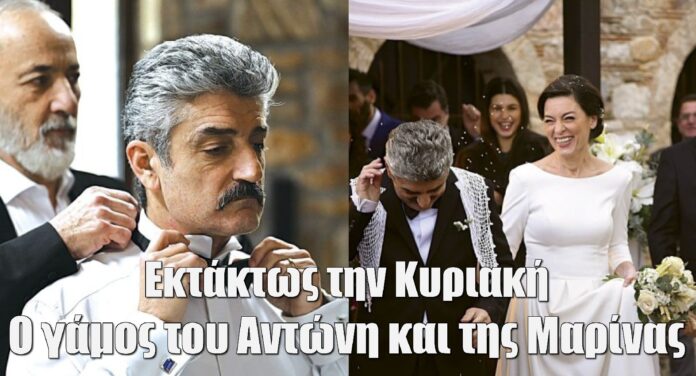 Στο επεισόδιο που θα παρακολουθήσουμε εκτάκτως την Κυριακή το βράδυ, φτάνει η ώρα του γάμου για τον Αντώνη και τη Μαρίνα, που πλέουν σε πελάγη ευτυχίας, ανυποψίαστοι για έναν μεγάλο κίνδυνο που καραδοκεί.
