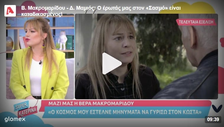 «Αυτό δεν το ξέρω. Ειλικρινά δεν ξέρω. Εγώ αυτό που ξέρω είναι ότι αυτή τη στιγμή με τη σειρά έχω τελειώσει. Δεν ξέρω αν θα με ξαναδείτε, δεν έχω κάνει άλλα γυρίσματα. Το τελευταίο ήταν αυτό που έφυγα»
