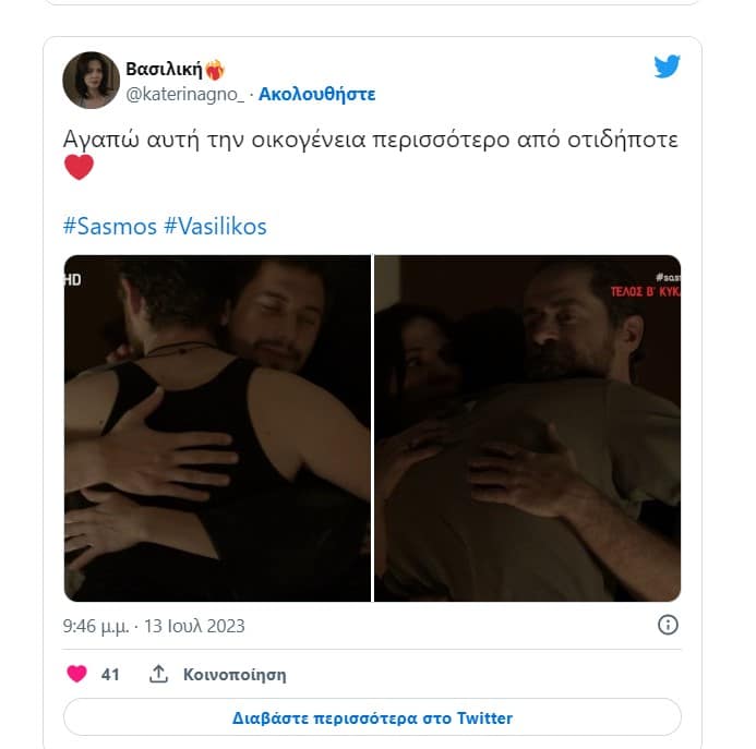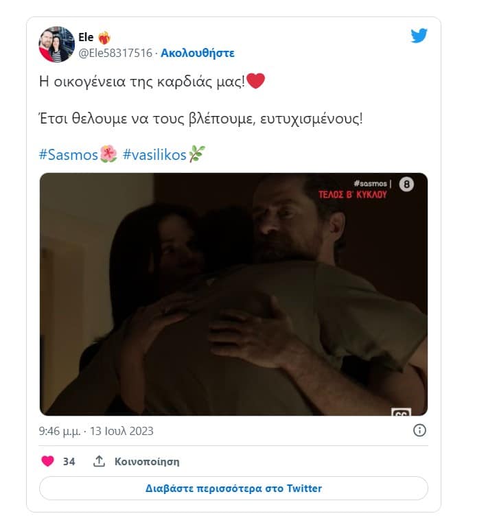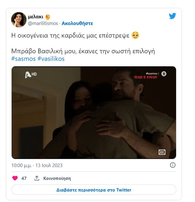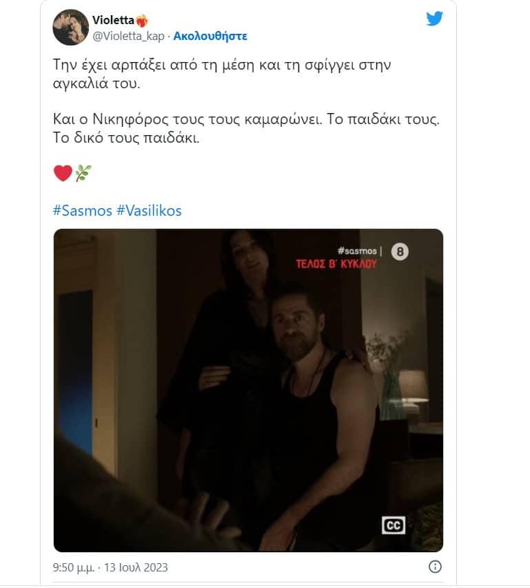 Λίγο πριν το μεγάλο φινάλε για το δεύτερο κύκλο στο Σασμό, μία σκηνή στην αρχή του επεισοδίου με το Μαθιό, τη Βασιλική και τον Νικηφόρο, ήταν αρκετή για να «λιώσει» όλο το Twitter, με αυτή την οικογένεια.
