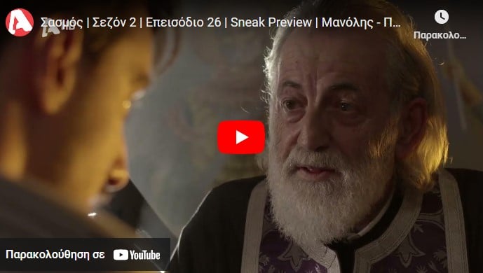 Ο Μανόλης ομολογεί στον παπά Μιχάλη το μυστικό που τον βαραίνει τον τελευταίο καιρό, στη σειρά Σασμός. Εκείνος, τον ακούει με προσοχή και παλεύει μέσα του να διατηρήσει την ψυχραιμία του…