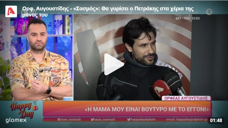 «Θα γυρίσει ο Πετράκης στα χέρια της μάνας του. Κάποια στιγμή θα γυρίσει και σε αυτό θα βοηθήσουμε όλοι. Δεν ξέρουμε ακόμα αν ο Σταύρος θα έχει καλό τέλος, δεν το γνωρίζουμε γιατί δεν έχουμε φτάσει τόσο μπροστά στα επεισόδια», είπε μεταξύ άλλων ο Ορφέας Αυγουστίδης.