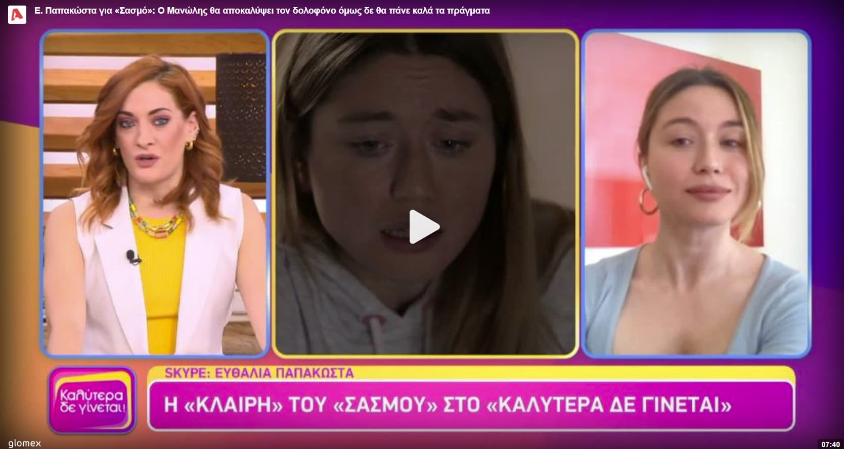 Κι όμως, ο Μανόλης και η Κλαίρη θα φτάσουν πολύ κοντά στην αποκάλυψη της αλήθειας! Η Ευθαλία Παπακώστα, καλεσμένη στην εκπομπή Καλύτερα Δε Γίνεται, μίλησε για την Κλαίρη στη σειρά Σασμός, αλλά και για όλα όσα ακολουθούν στη συνέχεια.