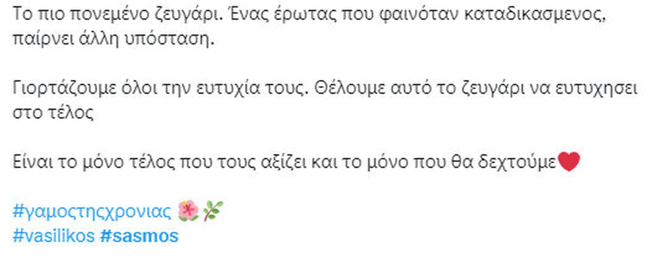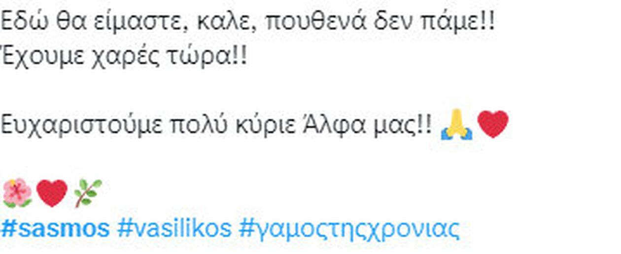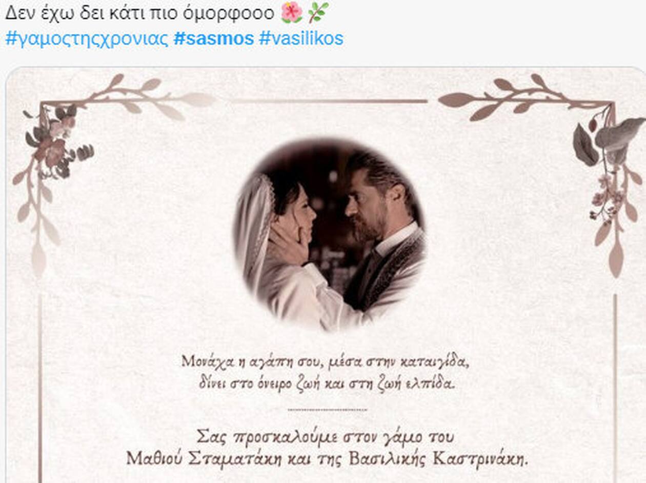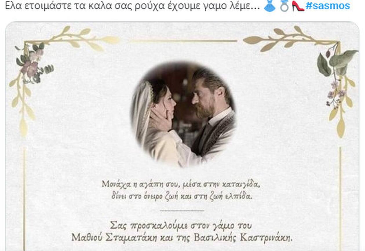 Σασμός: Χαμός στο twitter με το προσκλητήριο για τον γάμο της Βασιλικής με τον Μαθιό και το τριήμερο γλέντι που θα ακολουθήσει.