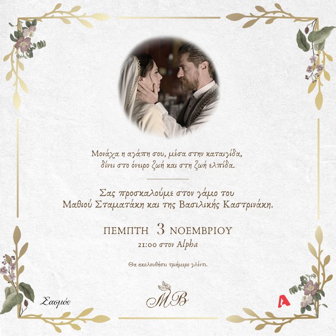 Σε μια πανέξυπνη κίνηση ο Alpha ετοίμασε ένα προσκλητήριο για το επεισόδιο της Πέμπτης (3-11) οπού επιτέλους θα δούμε το αγαπημένο μας ζευγάρι να παντρεύεται!