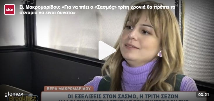 Η Βέρα Μακρομαρίδου, η τηλεοπτική Άσπα στον Σασμό, αποκαλύπτει για τον ρόλο της αλλά και για μια ενδεχόμενη τρίτη σεζόν, στην δημοφιλή σειρά του ALPHA.