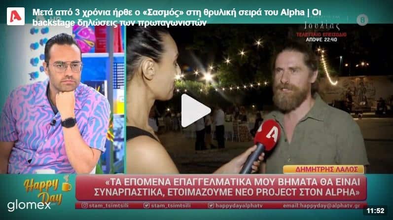 Ο Σασμός ρίχνει αυλαία την Δευτέρα 8/7 μετά από τρία χρόνια και η κάμερα της εκπομπής Happy Day με την Όλγα Λαφαζάνη βρέθηκε στο τελευταίο γύρισμα, όπου οι ηθοποιοί συγκινημένοι μίλησαν για αυτό το «ταξίδι» που τελειώνει.