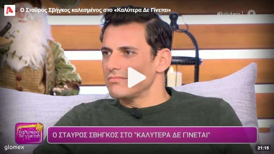 Καλεσμένος στην εκπομπή Καλύτερα δε γίνεται, βρέθηκε ο Σταύρος Σβήγκος το απόγευμα της Κυριακής 26/11. Ο ηθοποιός αναφέρθηκε στην δραματική σειρά του Open Έρωτας φυγάς στην οποία πρωταγωνιστεί. Ο ίδιος μίλησε και για τις ψευδείς ειδήσεις που έχει βιώσει αλλά και για τις εξελίξεις που έρχονται.