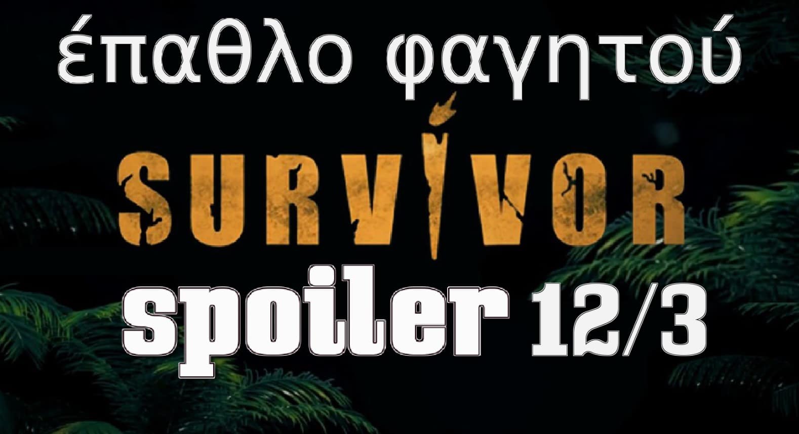 12/03 – Ποια ομάδα θα κερδίσει το έπαθλο φαγητού: Το φετινό Survivor ξεκίνησε πολύ δυνατά. Πιο δυνατά που μάλιστα ίσως να χαροποιεί και λίγο τους ιθύνοντες του ΣΚΑΙ. Αν αναλογιστεί κανείς ότι η φετινή χρονιά είναι μία χρονιά μέσα στη μυθοπλασία, τότε πάει καλά.