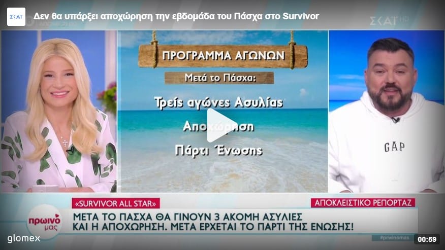 Δεν θα υπάρξει αποχώρηση την εβδομάδα του Πάσχα στο Survivor