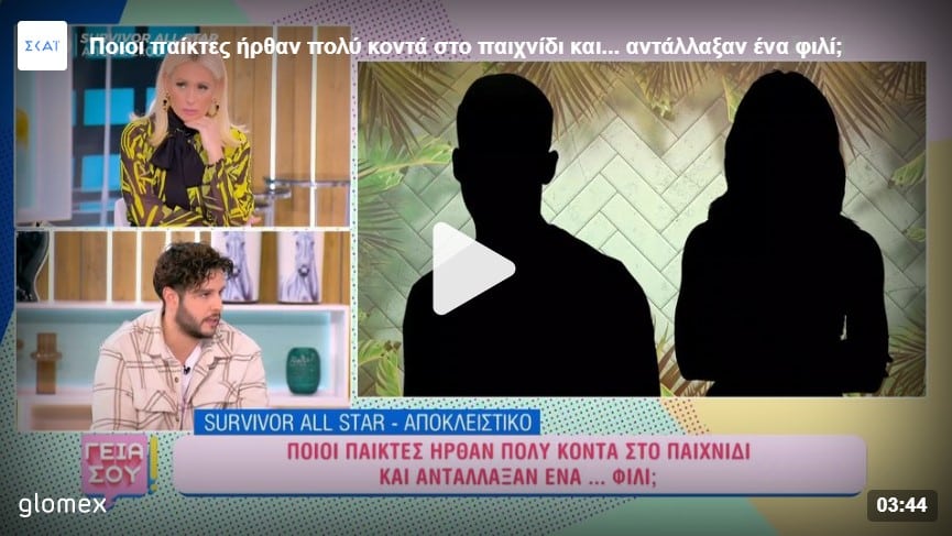 Αν και οι συνθήκες είναι δύσκολες, δύο παίκτες του Survivor All Star, κατάφεραν και ήρθαν πολύ κοντά και μάλιστα αντάλλαξαν και ένα φιλί στο στόμα, όπως αποκαλύφθηκε λίγη ώρα πριν στην εκπομπή του ΣΚΑΙ, «Γεια Σου»!