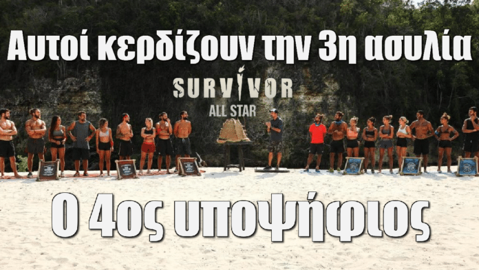 Σύμφωνα με το Spoiler λοιπόν, η ομάδα που κερδίζει την τρίτη ασυλία σήμερα, Τρίτη (4/4) στο Αll Star Survivor, είναι η Κόκκινη. Οι Διάσημοι πράγματι θα κάνουν το 3 στα 3, και θα πάνε πολύ ήρεμοι στο συμβούλιο.