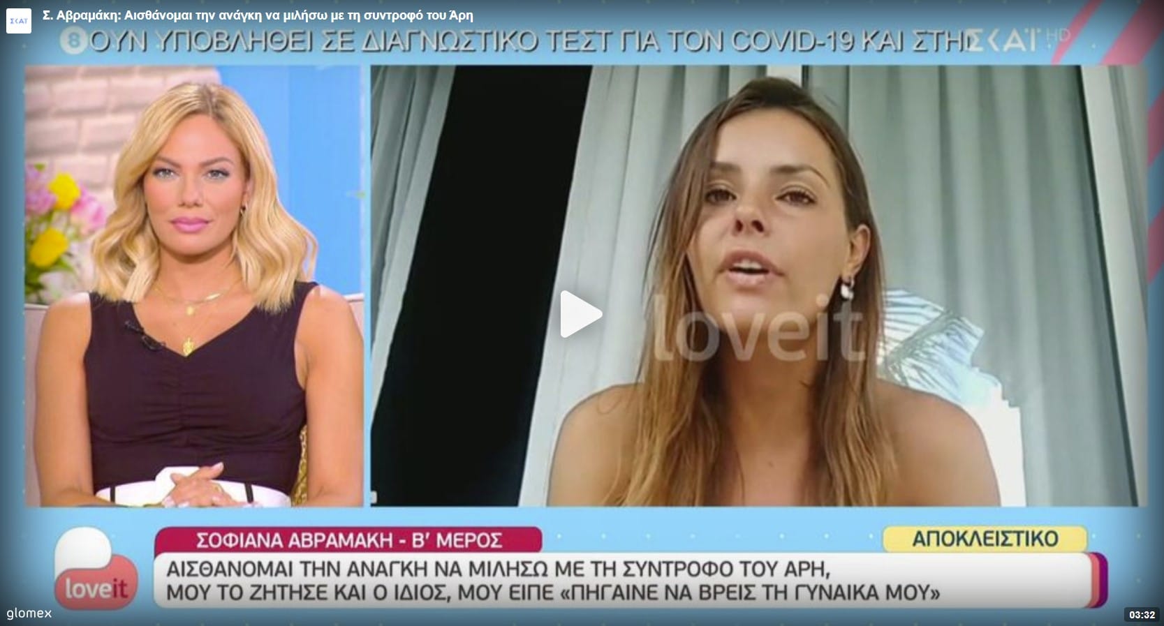 «Ο Άρης μέρα – νύχτα ξυπνούσε με το όνομα της Μαρίας, μας είχε πει κάθε λεπτομέρεια για τη σχέση τους. Την υπεραγαπά κι ό,τι κάνει, το κάνει για την ίδια και την οικογένειά του. Δεν μου έχει δώσει ποτέ το παραμικρό δικαίωμα, ούτε έχει ειπωθεί ποτέ κάτι πονηρό ανάμεσά μας. Ποτέ δεν απομονωθήκαμε οι δυο μας κάπου, όπως είχε αναφερθεί», δήλωσε η Σοφιάννα Αβραμάκη.
