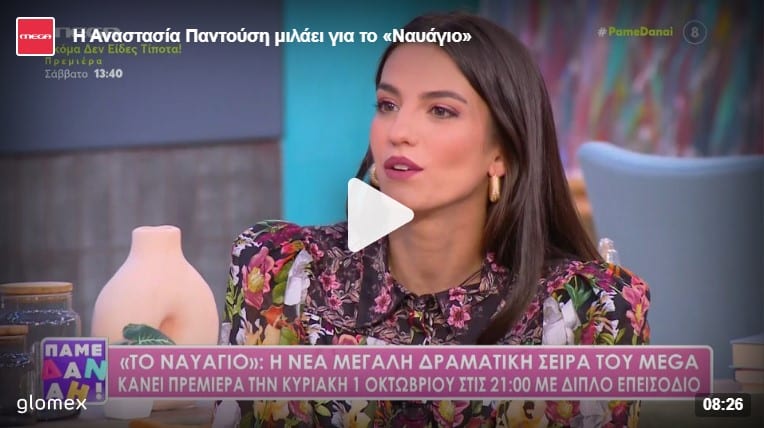 Στην εκπομπή “Πάμε Δανάη” φιλοξενήθηκε σήμερα 21/9, η αγαπημένη ηθοποιός Αναστασία Παντούση κι εκτός των άλλων αναφέρθηκε και στην σειρά “Το Ναυάγιο” που θα πρωταγωνιστήσει.