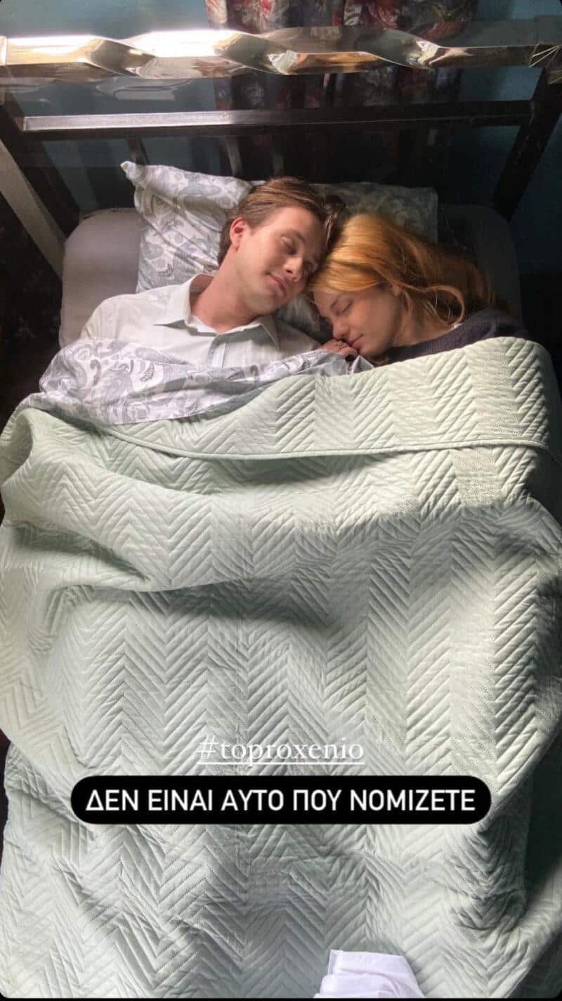Η Ευγενία Ξυγκόρου (Ιουλία) και ο Δημήτρης Αριανούτσος (Χρήστος) δημοσίευσαν μια φωτογραφία από τα γυρίσματα όπου «κοιμούνται» στο κρεβάτι του δεύτερου.