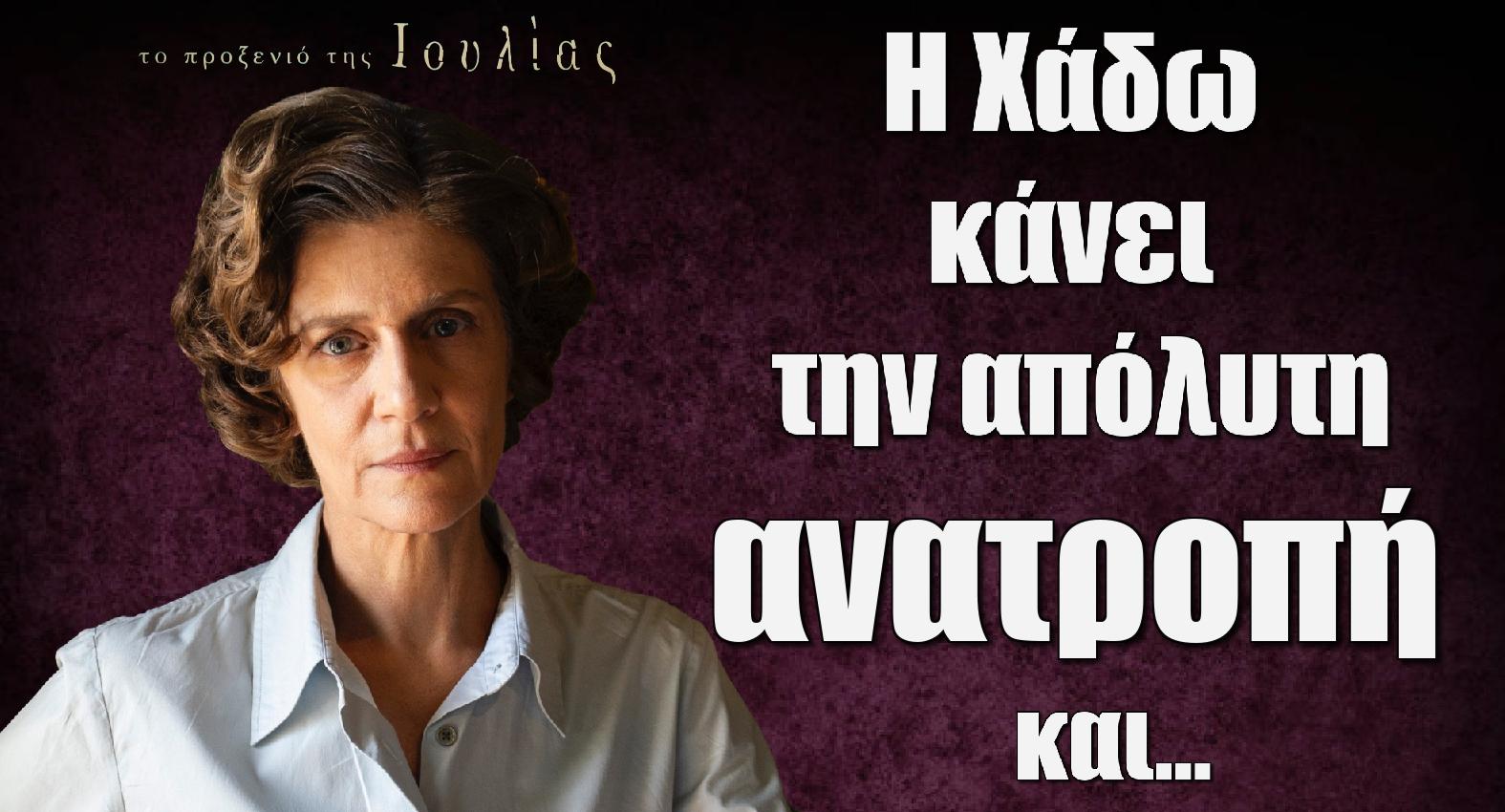 Η Χάδω κάνει μια πολύ μεγάλη ανατροπή όπως θα δούμε στα επόμενα επεισόδια της σειράς του ALPHA, Προξενιό της Ιουλίας και παίρνει μια απόφαση που θα φέρει τα πάνω κάτω.