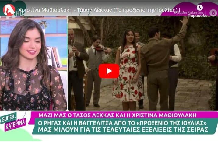 Ο Τάσος Λέκκας και η Χριστίνα Μαθιουλάκη είναι ο Ρήγας και η Βαγγελίτσα στη σειρά «Το προξενιό της Ιουλίας». Οι δύο πρωταγωνιστές της αγαπημένης σειράς των τηλεθεατών του Alpha, βρέθηκαν στο πλατό της Super Κατερίνας και μίλησαν για το μέλλον τους και τις εξελίξεις στα επόμενα επεισόδια.