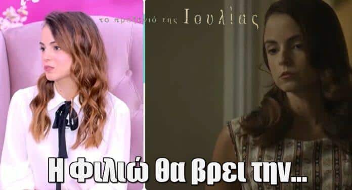 «Η Φιλιώ είναι ένα ιδιαίτερο πλάσμα. Την έχω αγαπήσει πολύ, δεν ξέρω αν είναι αντίζηλος. Η Ιουλία είναι αντίζηλος της Φιλιώς. Το προξενιό θα προχωρήσει με την Ιουλία και θα βρει η Φιλιώ την ευκαιρία να κερδίσει αυτό που θέλει. Αλλά δεν ξέρω αν θα είναι αυτό που πραγματικά ήθελε.